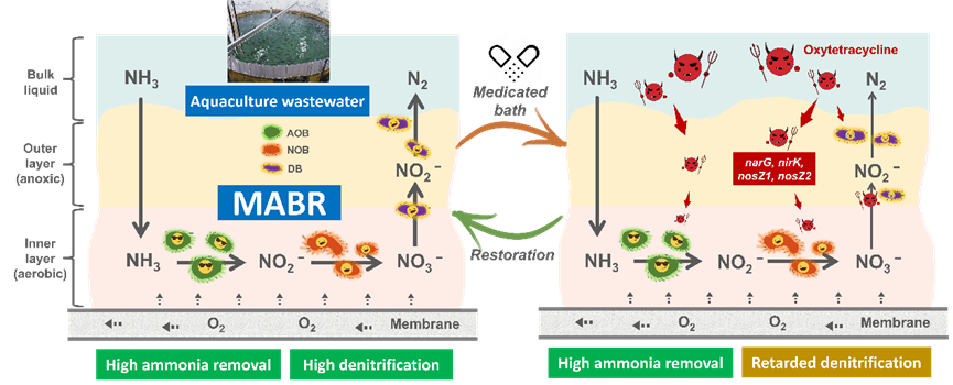 论文速递 | 51暗网 马金星教授课题组WR:分层生物膜结构驱动MABR实现水产养殖药浴废水高效除氨