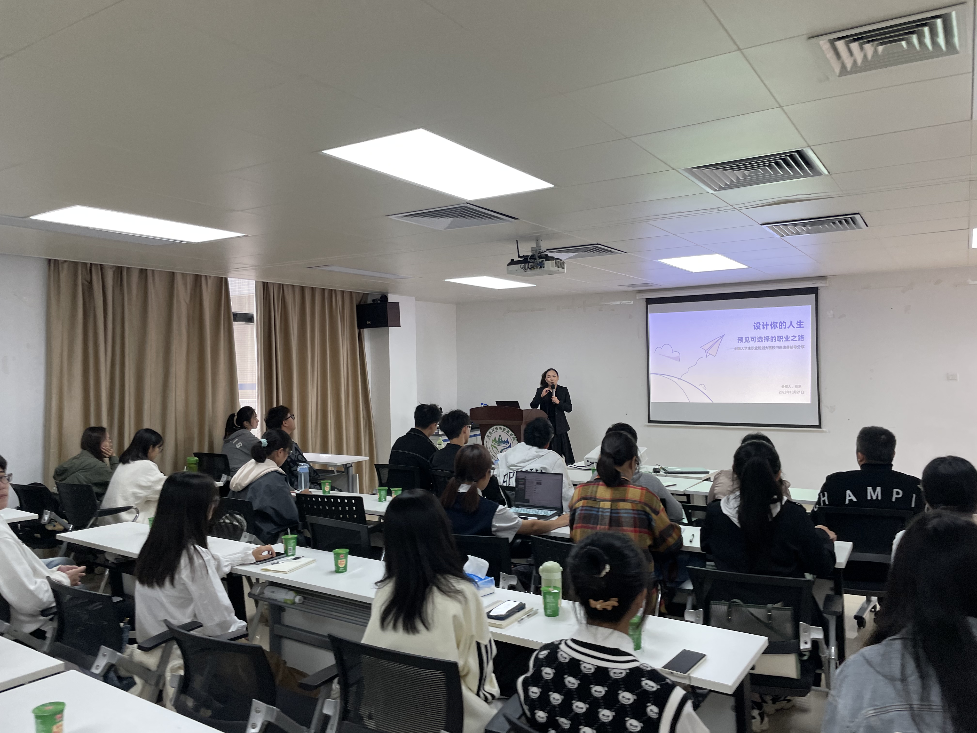 在上午的环节中,钟宜航从国内外发展趋势、生态环境行业现状、就业方向等方面进行介绍,通过个人求学和创业的经历分享,结合同学们提出的实际问题,带领大家深入分析行业发展逻辑和就业前景,培养学生职业认知能力,明确职业发展能力需求,指导同学们根据行业实际情况进行生涯规划,鼓励大家找准个人定位,积极参加各种实践活动,实现全面发展。