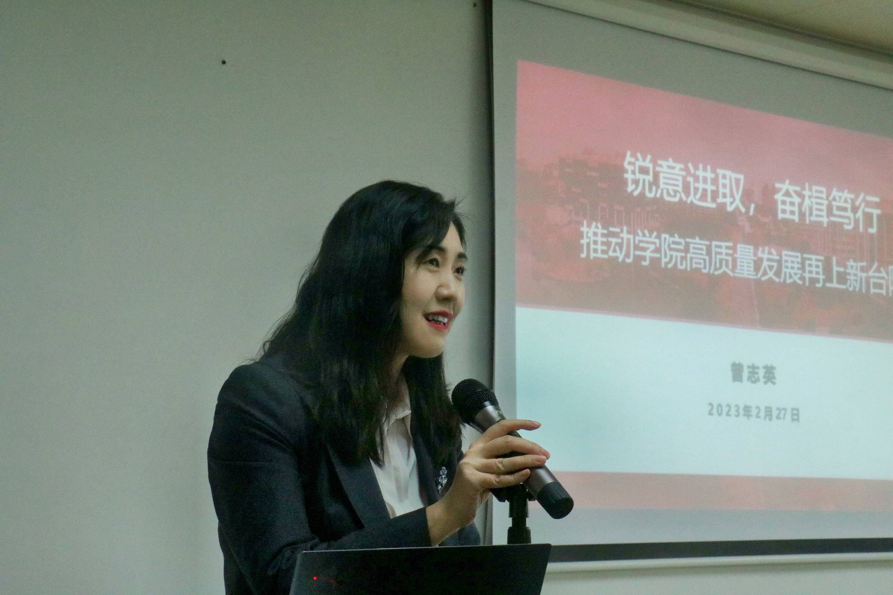 学院党委书记曾志英作党委工作报告,全面总结了学院党委2022年的工作成绩,并对2023年作了工作部署。学院党委将继续认真贯彻落实党的二十大精神,推进学校“1+2+3”攀撑计划学科提升工程,继续高质量提升学院党建、学科、教学科研和学生工作,扎根粤港澳大湾区办好人民满意的学院,为学校创建“双一流”高校贡献学院力量。