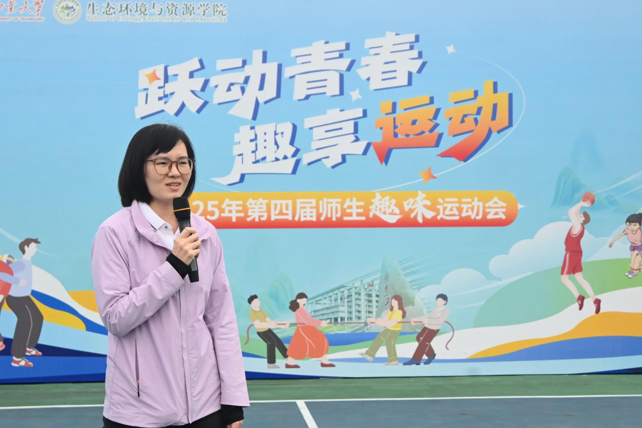 武慧娟为活动致辞并宣布运动会开幕。她勉励师生在学术与科研道路上不畏艰难、勇于攀登,同时强调在运动中感受协作的力量,在学习中发扬团队精神,共同营造开放包容、互助共进的学院氛围。提醒大家在学业与科研之余,积极投身体育锻炼,筑牢身心健康根基。