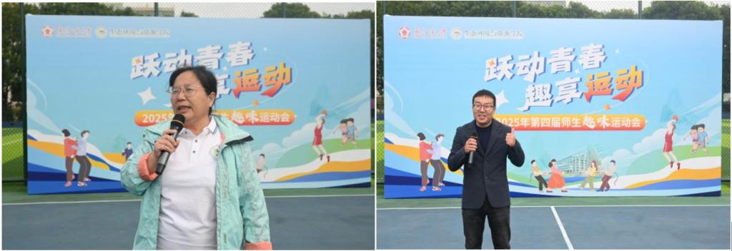 在大学城校区篮球场成功举办“跃动青春 趣享运动”第四届师生趣味运动会。学院党委副书记武慧娟、副院长马金星、班主任、辅导员、教师代表以及2025级新生共同参与了本次活动。活动由武慧娟副书记主持。
