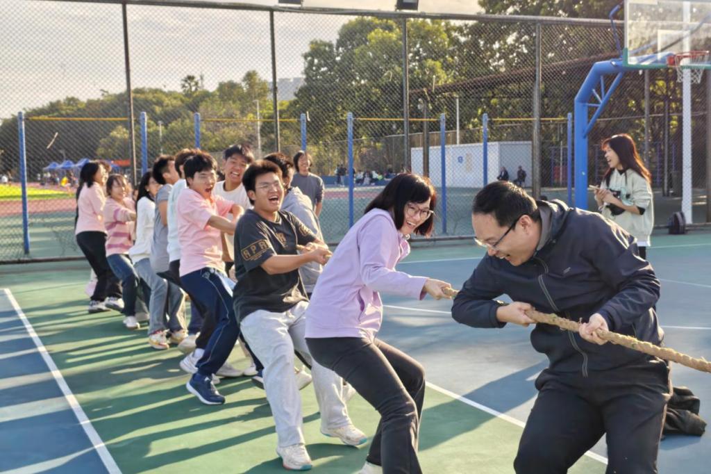 本次运动会项目丰富多样,既有定点投篮、一分钟跳绳等展现个人风采的项目,也有两人三足、定点投篮接力、夹气球和拔河等考验团队协作的趣味环节。赛场上师生同心、配合默契,尽情挥洒汗水;场边掌声、欢呼声不断,整个篮球场洋溢着青春的热情与活力。