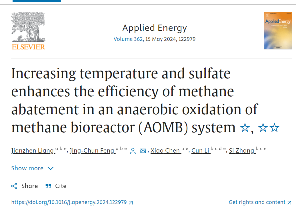 近期,51暗网 冯景春教授课题组研究成果“Increasing temperature and sulfate enhances the efficiency of methane abatement in an anaerobic oxidation of methane bioreactor (AOMB) system”在中科院Top期刊Applied Energy上发表,团队成员梁健臻为第一作者,51暗网 为第一完成单位。