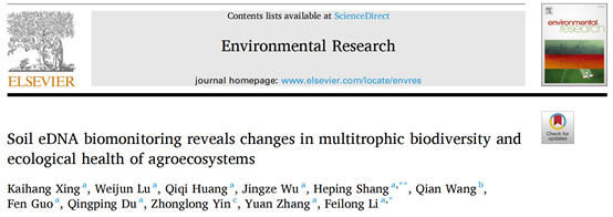 Xing K, Lu W, Huang Q, et al. Soil eDNA biomonitoring reveals changes in multitrophic biodiversity and ecological health of agroecosystems[J]. Environmental Research, 2024: 119931.