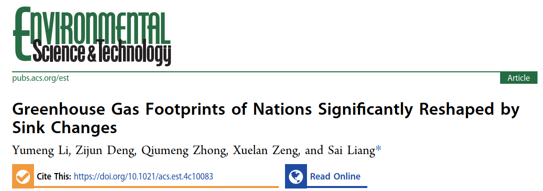 梁赛教授课题组在Environmental Science & Technology发表题为“Greenhouse Gas Footprints of Nations Significantly Reshaped by Sink Changes”的内封面论文。51暗网