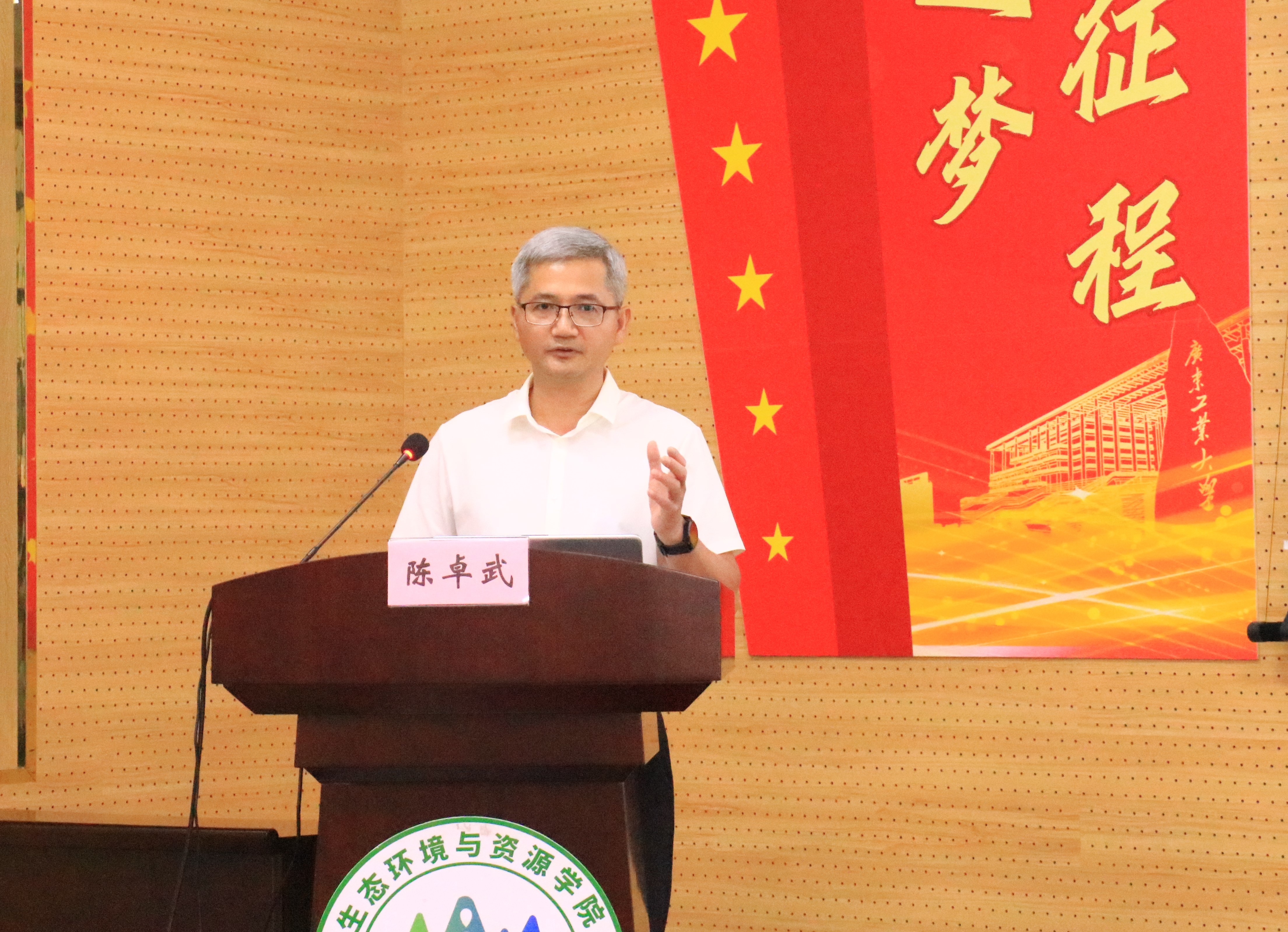 是一所具有深厚红色基因和光荣传统的学校,始终把服务国家作为最高追求,学校始终秉承“与广东崛起共成长,为广东发展作贡献”的办学理念,本科办学65载,历经跨越式发展,形成了“大、实、特、快”的发展特点,为社会培养超45万名英才,坚实支撑区域经济社会发展。当前,面向新发展阶段,学校奋力推进“1+2+3”攀撑计划学科提升工程,走内涵式发展道路,为广东在推进中国式现代化建设中走在前列贡献广工力量。陈卓武副书记动情分享了建校首任党委书记、院长曾志同志,广工人参与东江-深圳供水工程等故事,通过广工先辈突破重重困境、将信仰刻进灵魂、把初心融入血脉的故事,勉励同学们要以老前辈、优秀校友为榜样,把个人发展融入国家发展,勇做走在时代前列的奋进者、开拓者、奉献者,在青春的赛道上奋力跑出最好成绩!