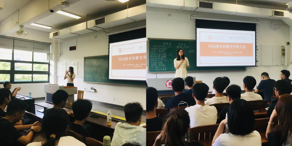 于教1-318召开新生年级大会,辅导员章莹,新生班主任王樟新、吴国钟及全体2024级本科新生参加,新生辅导员欧少珍主持会议。