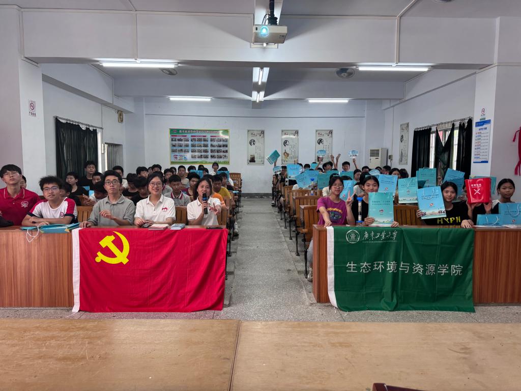 为促进生态文明教育与生态实践有机融合,培养具有良好生态认知水平优秀学子,推动青年学生在理论学习与社会实践中成长为兼具生态责任感与家国情怀的新时代青年,突击队在圣堂镇圣堂中学开展“生态文明+红色思想”双主题融合宣讲活动。一方面,通过现场讲解、净水科普小实验、垃圾分类互动游戏等环节普及生态环保知识,将污水处理原理与生态知识转化为可感可知的体验,树立学生的社会主义生态文明观,形成生态文明建设合力;另一方面,通过图片展示、互动交流等形式,讲述了中国共产党发展历程以及恩平当地的革命记忆,厚植青少年爱党爱国情怀。宣讲结束后,同学们深受触动,对革命先辈的崇高理想和无私奉献表达由衷的敬意,纷纷表示将加强理论学习,投身社会低碳实践,引领生态文明新风尚。