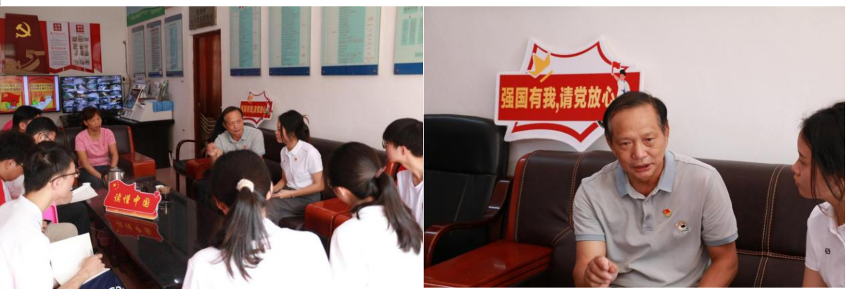 在圣堂镇塘龙村党群服务中心,突击队与村委会支部书记吴素霞交谈,了解当地英雄事迹和革命精神,同时开展面对面“五老精神”对话活动,与“五老”代表——当地老教师、老校长、老党员唐儒赞深入对话。唐儒赞始终牢记“为党育人、为国育才”的初心使命,秉持“学高为师、身正为范”的教育理念。他以其近40年深耕基层教育的经历嘱托大学生们“坚守初心、勇于担当”,让队员们深刻理解“五老精神”与乡村振兴的内在关联,凝聚起“老中青”协同的力量。