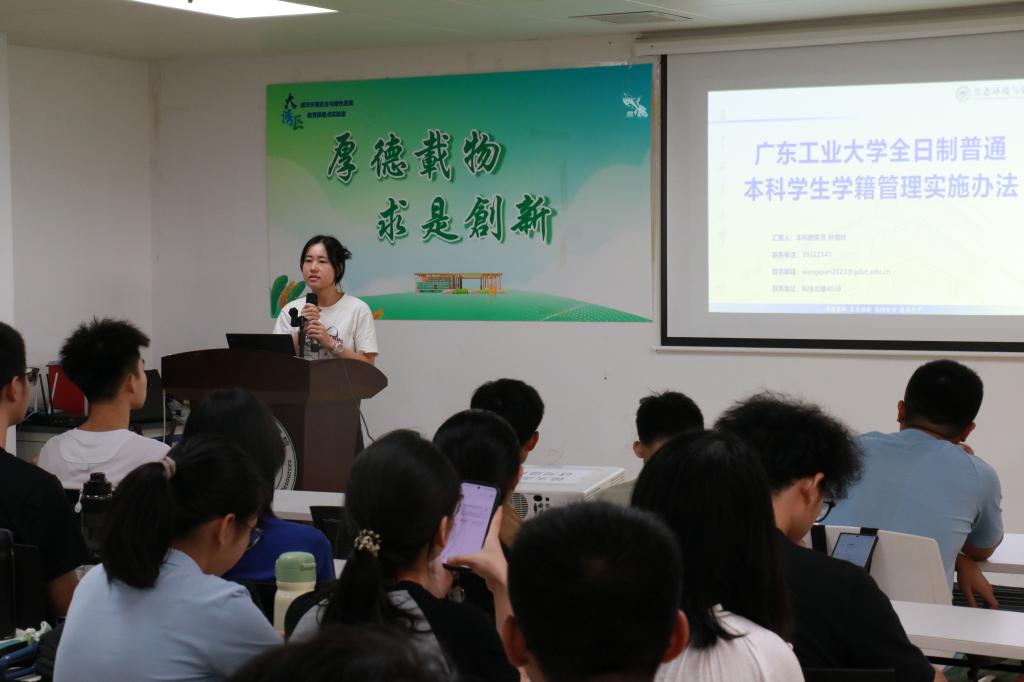 为帮助新生做好大学学习规划,顺利毕业,9月12日上午,学院本科生教务秘书林憶玲老师在科技北楼401为新生详细介绍了学校的学籍管理规定。她解析了从入学到毕业的全过程学籍要求,协助新生准确把握学分、考勤、考核、体测等准则,为同学们合理规划学业路径奠定基础。