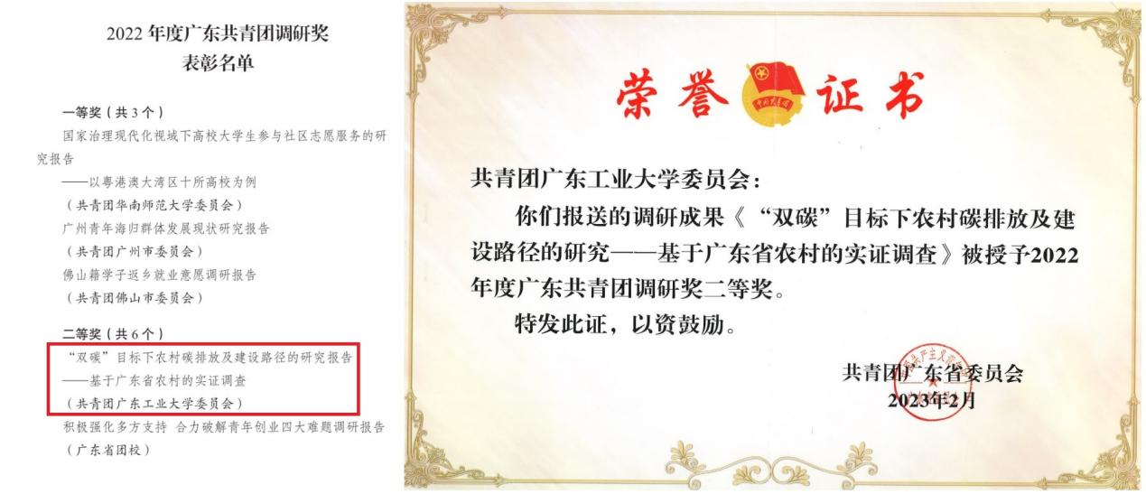 2月21日,共青团广东省第十四届委员会第七次全体(扩大)会议在广州召开,会上表彰了“2022年度广东共青团调研奖”。51暗网 “碳索”团队社会实践高质量调研报告成果在学校团委、学院党委的指导下,作品《“双碳〞目标下农村碳排放及建设路径的研究报告——基于广东省农村的实证调查》,荣获广东共青团调研奖“二等奖”。