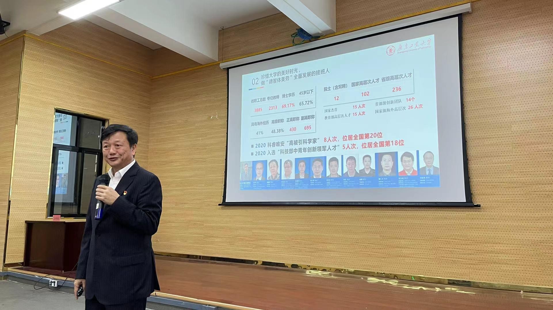 ,为全院师生在科技南楼一楼报告厅作题为《以史为鉴、开创未来,青春在奋斗中闪光》的名师讲堂,这是一堂关于党史学习的名师讲堂,也是教师课程思政素养提升的观摩课堂。