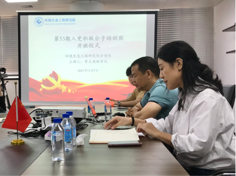 于科技北楼503A会议室举办了环境生态工程研究院分党校第53期入党积极分子培训班开班仪式暨培训班专题讲座第一讲。院党委副书记曾志英、马克思主义学院副院长陈位志及本期入党积极分子共42人参加了开班仪式。