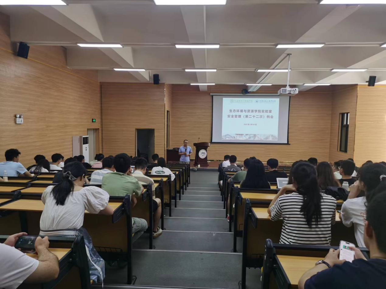 (暨环境生态工程研究院)实验室安全管理(第二十二次)例会在科技南楼一楼报告厅顺利召开。副院长张远教授、周扬副教授等出席本次会议,学院实验员、相关博士后和近两百名研究生参加了会议。