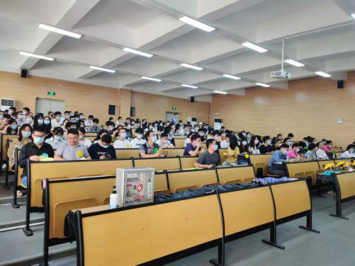 演练采用现场演练和实际操作演练相结合的模式,既保证了演练的质量,也实现了全院参与。现场演练分为两个部分,首先是视频和演示观摩学习,视频详细地向在场师生展示了实验室危化品泄露情况下的应急逻辑以及具体的应急措施,强调了遇事勿慌,从而实现反常情况下的正常发挥,才能更好地应对各种紧急情况。随后是实际操作演练,在场师生进行分组后,在领队老师的带领下,对护目镜、防护服和防护面罩等的穿戴进行了逐一尝试,并对移动喷淋装置进行了实操,使用中各领队老师也对洗眼器的冲洗时间等细节进行了强调,这些操作细节与处理逻辑往往是紧急情况发生时危险处置是否达到紧急预案最终目标的重要关键点。